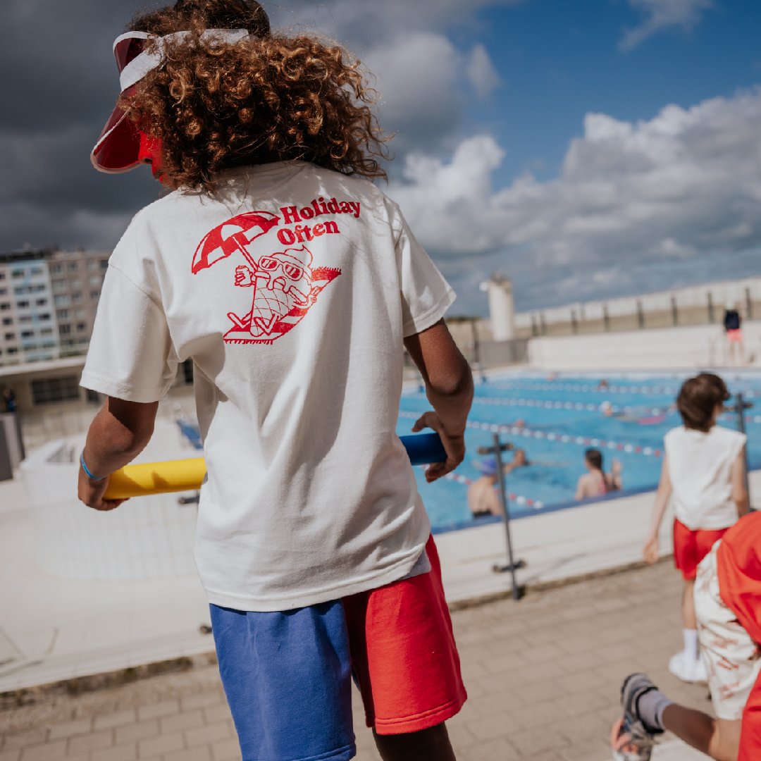 “In order to live a happy life, one should holiday often”. Holiday-ing is a state of mind. Taking time out to do things that feed your soul. You don’t always need a fancy getaway. For the SS25 campaign we take you to the Belgian coast. When the weather isn't good enough to go to the beach, you can rent go-carts, sell paper flowers, eat waffles and ice creams...