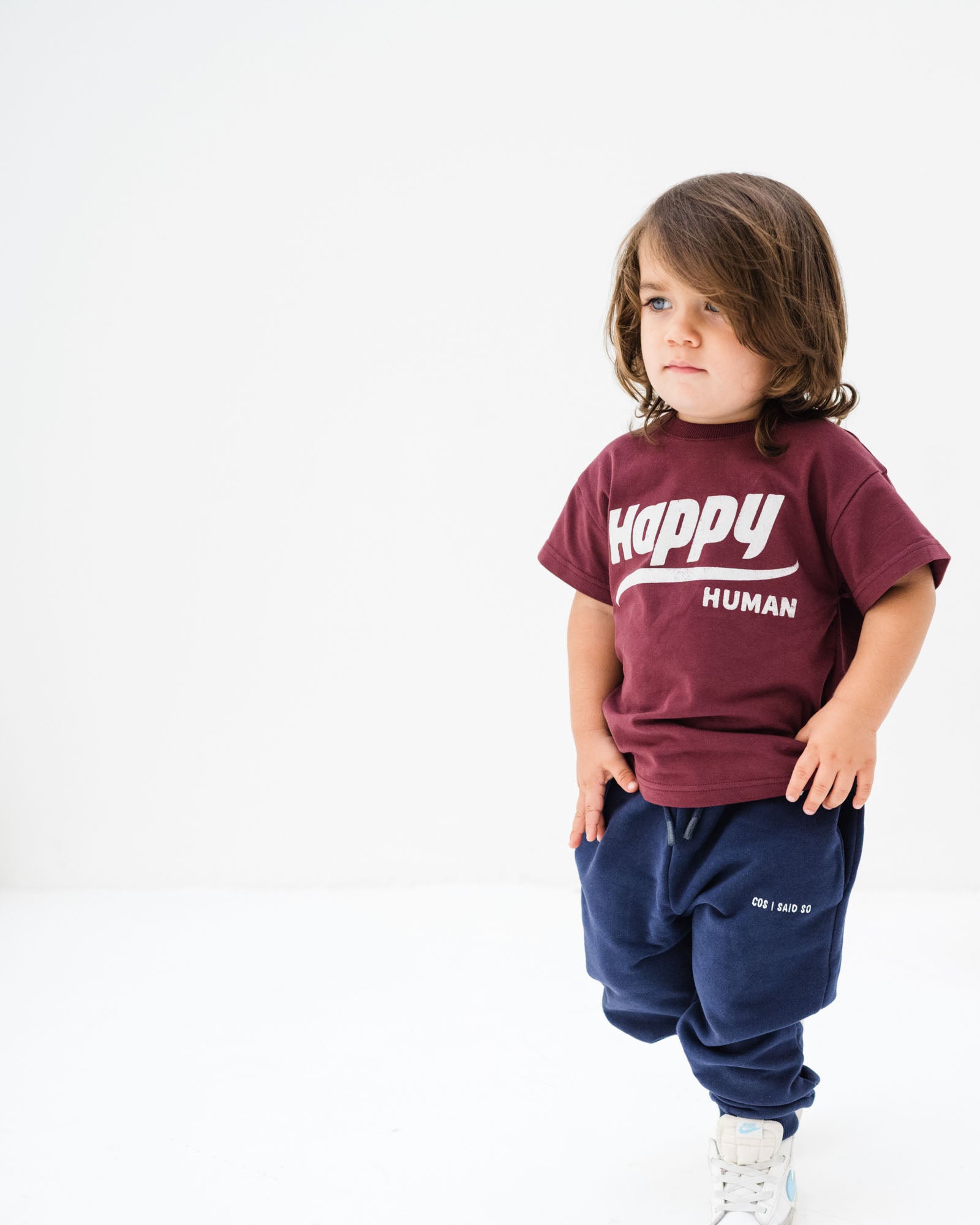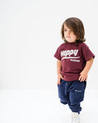 This cheerful port-colored kids' t-shirt features the uplifting "Happy Human" print, perfect for spreading positivity and good vibes. Made from soft, breathable fabric, it offers comfort all day long, whether they’re playing, learning, or just hanging out. This tee is all about embracing happiness and being your true self, making it a great addition to any young one's wardrobe!