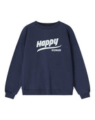 Let your little one wear joy on their sleeve—literally! This cozy kids crewneck features the uplifting phrase "happy human" in a playful new font, designed to inspire kindness and confidence. The maritime colourway, makes it a stylish staple for everyday adventures. Made from soft, durable fabric perfect for play, snuggles, and everything in between. Our besteller print since 2016, in a new graphic!