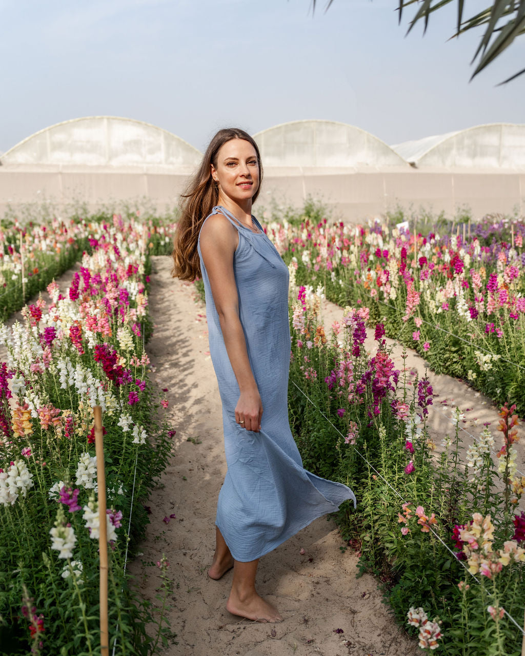 this long dress with 2 adjustable straps is made of high quality certified muslin cotton of which the dyes are free from harmful chemicals